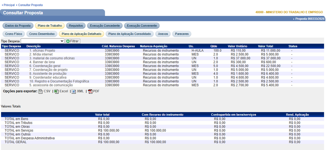 | 2026 | 44560014 - Reimont | R$ 100.000,00 | - | - | R$ 100.000,00 | Formar profissionais capazes de criar, produzir e comercializar bijuterias, ecojoias e acessórios customizados, desenvolvendo competências técnicas, criativas e empreendedoras para inserção no mundo do trabalho e geração de renda por meio da economia criativa. | Formação em Confecção de Bijuterias e Ecojoias | - |